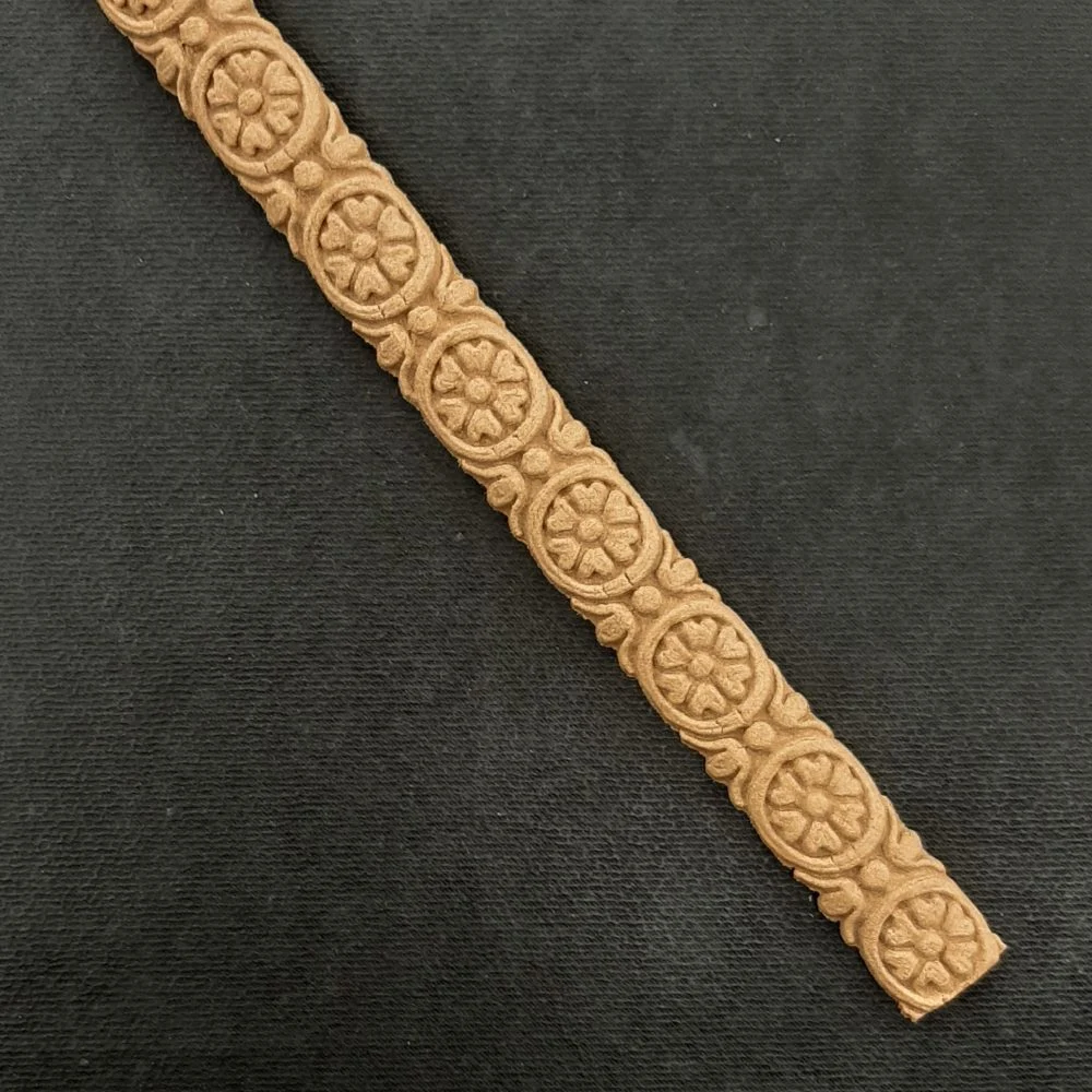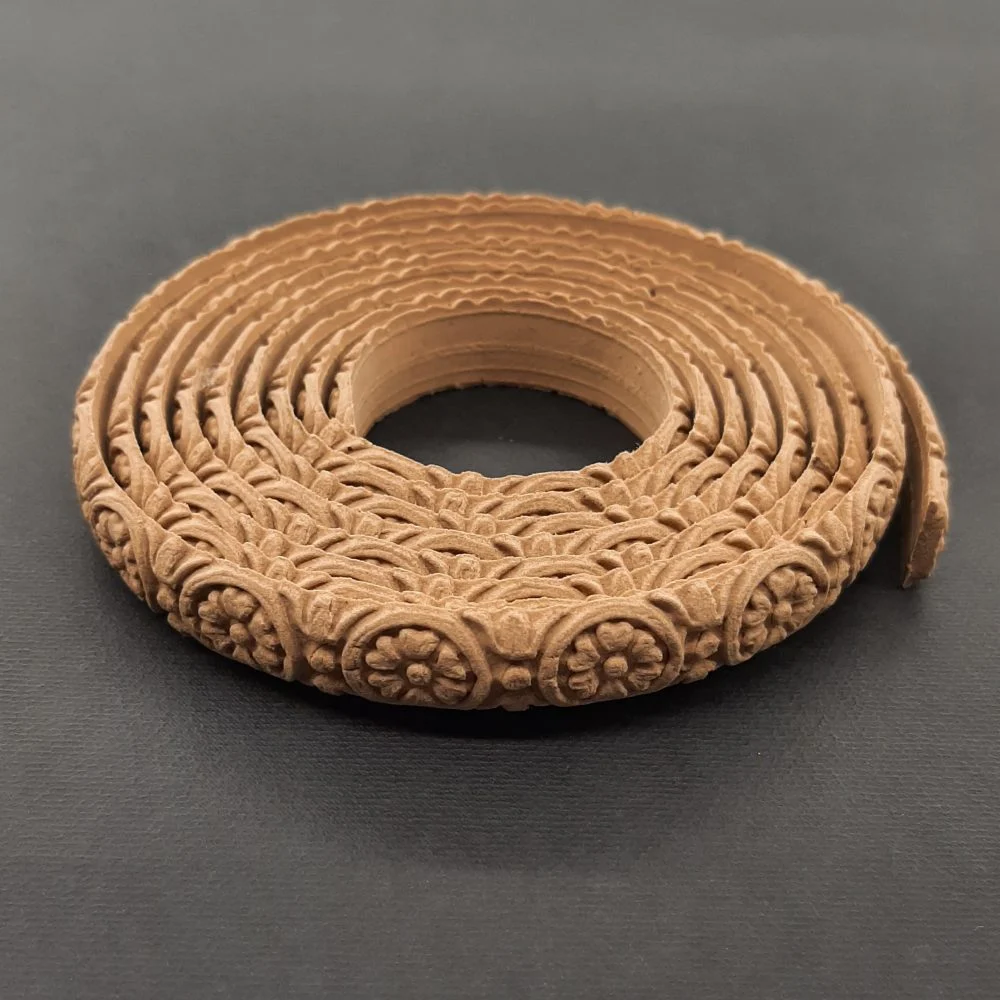 Διακοσμητικά από ξυλοπολτό για οποιαδήποτε χρήση στα έργα σας. Έυκαμπτα ,αφού τα ζεστάνετε με πιστολάκι (σεσουάρ), μπορείτε να τα εφαρμόσετε και σε στρογγυλές επιφάνειες όπως μπουκάλια , έπιπλα κ.τ.λ