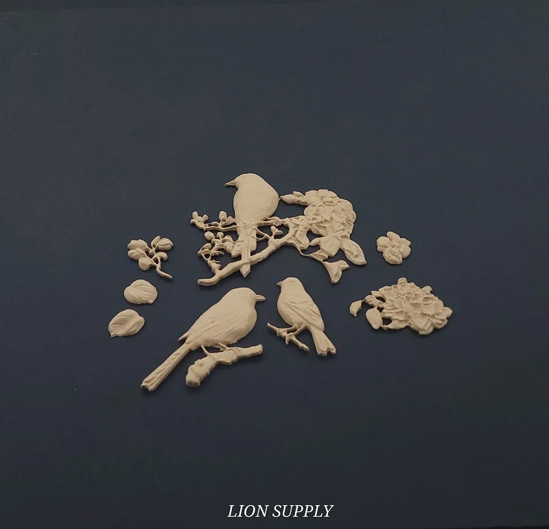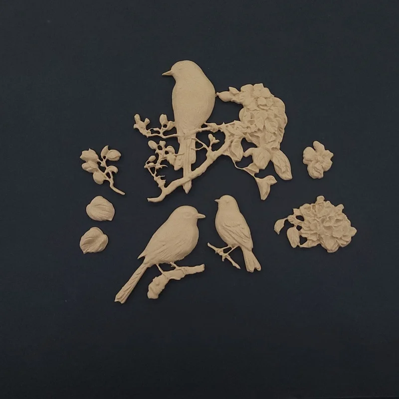 Διακοσμητικά από ξυλοπολτό για οποιαδήποτε χρήση στα έργα σας. Έυκαμπτα ,αφού τα ζεστάνετε με πιστολάκι (σεσουάρ), μπορείτε να τα εφαρμόσετε και σε στρογγυλές επιφάνειες όπως μπουκάλια , έπιπλα κ.τ.λ
