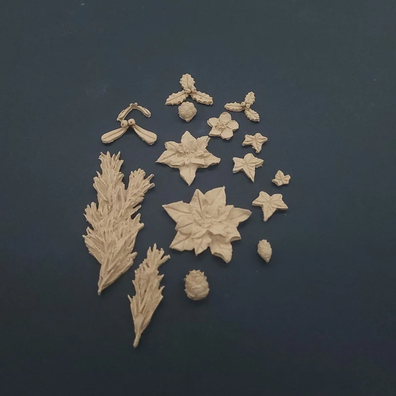 Διακοσμητικά από ξυλοπολτό για οποιαδήποτε χρήση στα έργα σας. Έυκαμπτα ,αφού τα ζεστάνετε με πιστολάκι (σεσουάρ), μπορείτε να τα εφαρμόσετε και σε στρογγυλές επιφάνειες όπως μπουκάλια , έπιπλα κ.τ.λ.