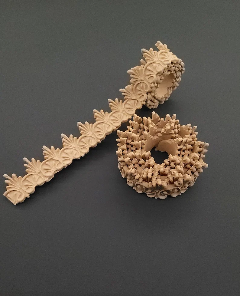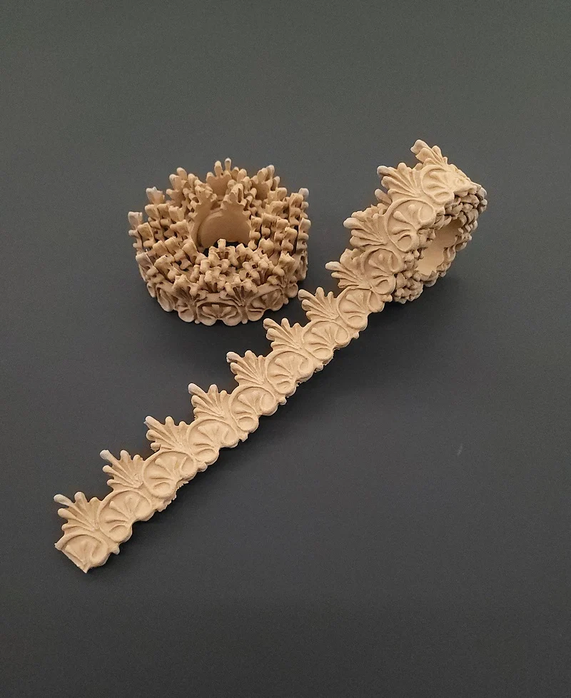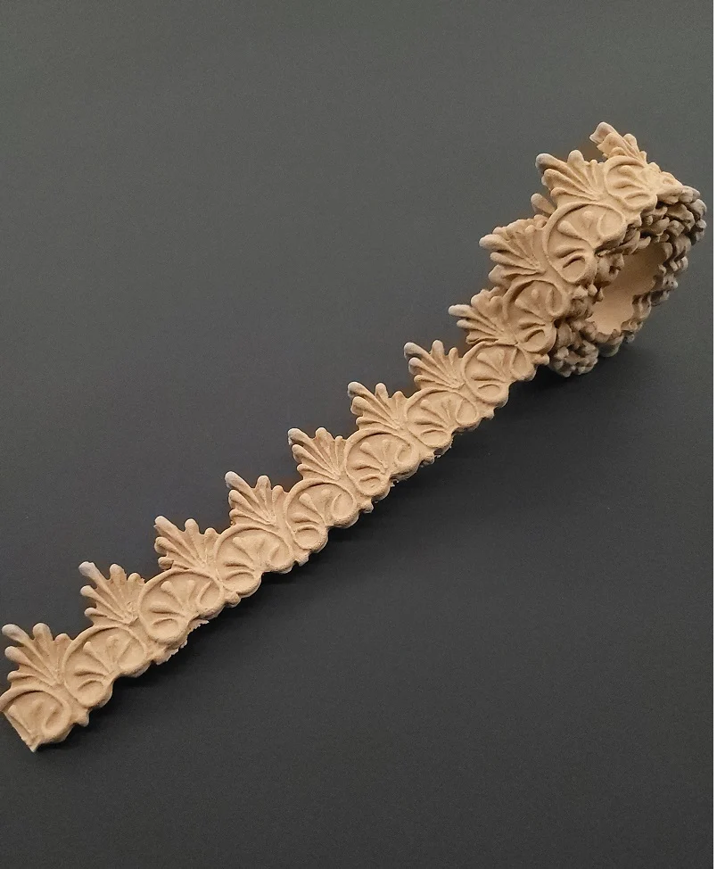 Διακοσμητικά από ξυλοπολτό για οποιαδήποτε χρήση στα έργα σας. Έυκαμπτα ,αφού τα ζεστάνετε με πιστολάκι (σεσουάρ), μπορείτε να τα εφαρμόσετε και σε στρογγυλές επιφάνειες όπως μπουκάλια , έπιπλα κ.τ.λ