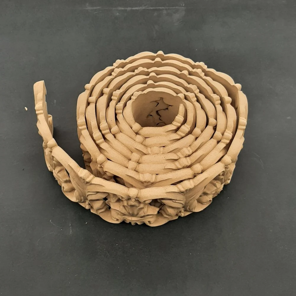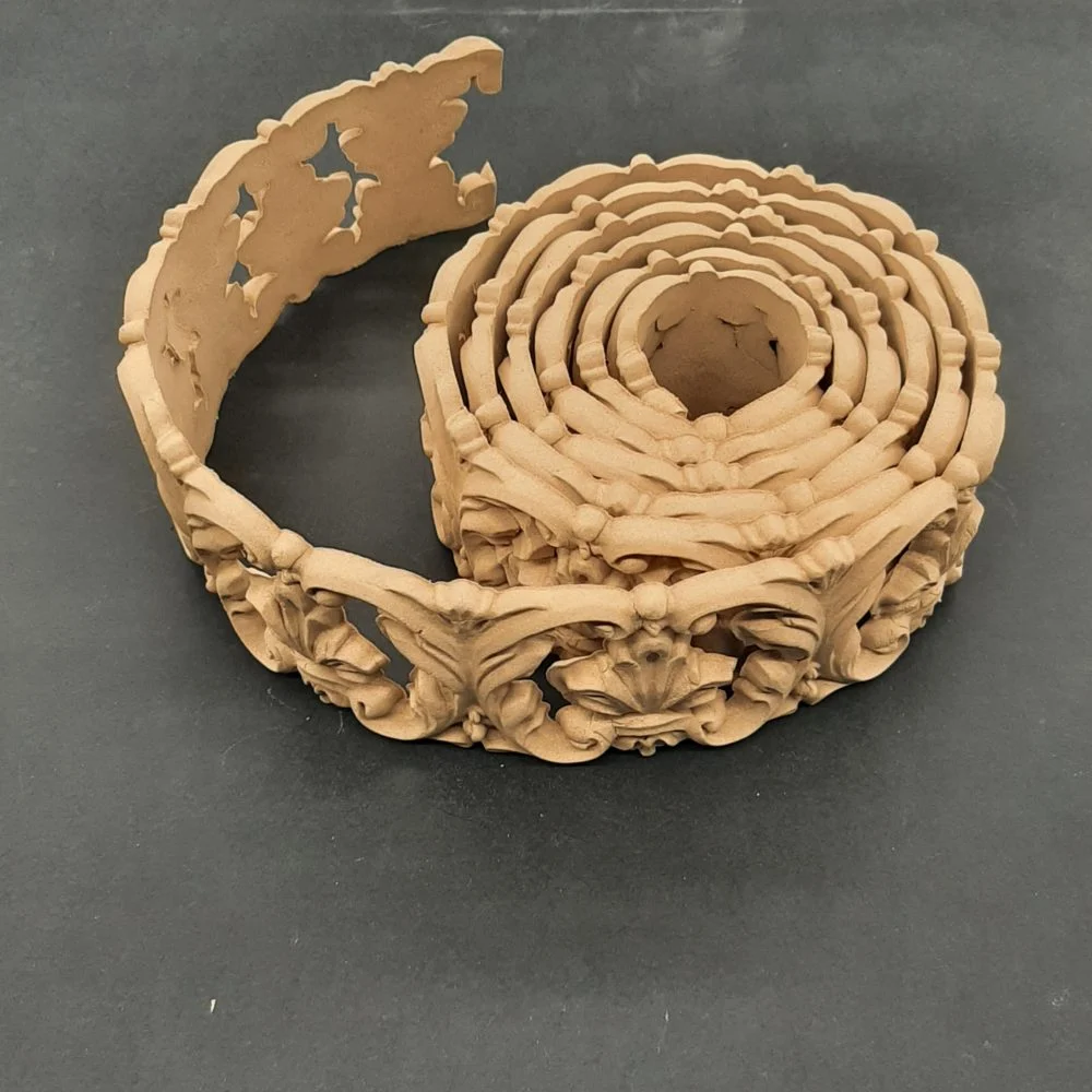 Διακοσμητικά από ξυλοπολτό για οποιαδήποτε χρήση στα έργα σας. Έυκαμπτα ,αφού τα ζεστάνετε με πιστολάκι (σεσουάρ), μπορείτε να τα εφαρμόσετε και σε στρογγυλές επιφάνειες όπως μπουκάλια , έπιπλα κ.τ.λ