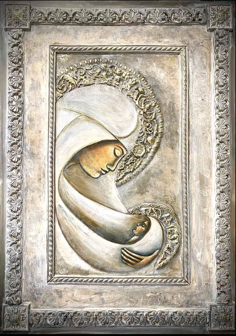 Εικόνα Παναγίας με ξυλόγλυπτα στοιχεία.Περιλμβανει: