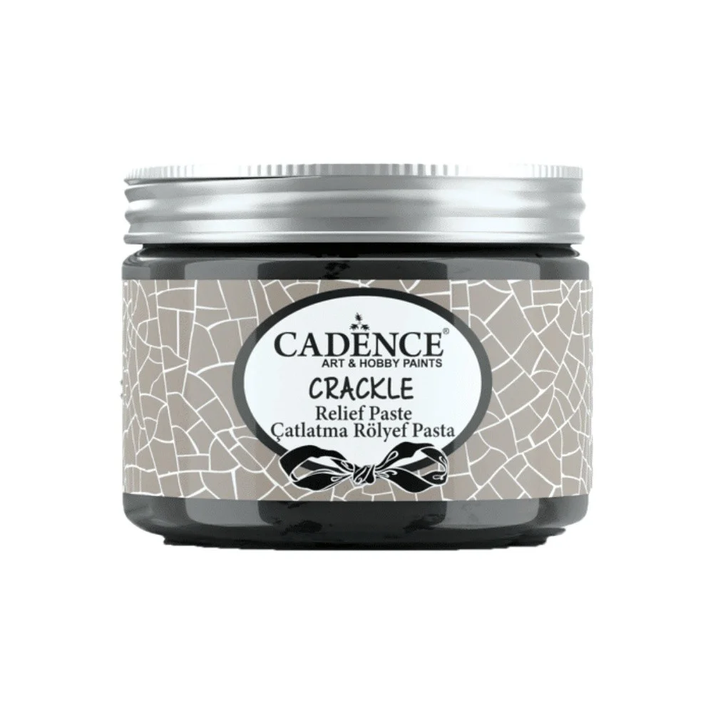 Το Crackle Paste είναι μια πάστα κρακελέ 1ος συστατικού με βάση το νερό, λευκού χρώματος κρακελέ που δημιουργεί ένα μοτίβο σπασίματος του κελύφους του αυγού καθώς στεγνώνει στον αέρα. Κατάλληλο για κάθε πορώδη επιφάνεια. Απαιτείται αστάρι σε λείες επιφάνειες. Χρωματίζεται και βάφεται με ακρυλικά χρώματα Cadence. Μόνιμο φινίρισμα. Μπορεί να στεγνώσει με το πιστολάκι μαλλιών. Η πάστα θα σπάσει καθώς στεγνώνει και η δομή του ιστού και το μέγεθος των ρωγμών εξαρτάται από το πάχος της πάστας που εφαρμόζεται. Για μεγαλύτερες ρωγμές εφαρμόστε το universal primer και παχύτερη στρώση πάστας και για λεπτότερες ρωγμές απλώστε μια πιο λεπτή στρώση. Μη τοξικό. Πιστοποιημένο προϊόν EN71 & CE.