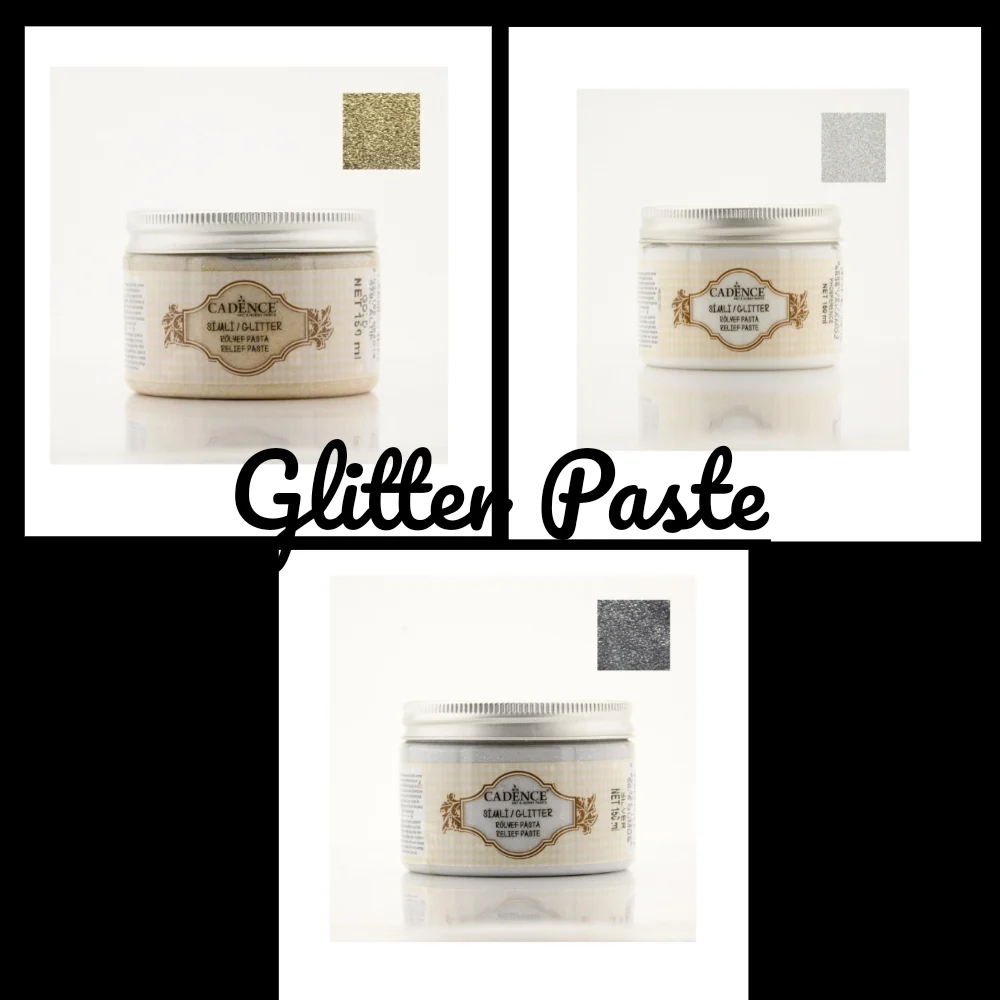 Πάστα διαμόρφωσης γκλίτερ. Εφαρμόζεται για να δίνει εφέ διαστάσεων στα αντικείμενα. Μόλις στεγνώσει δίνει λαμπερό αποτέλεσμα. Είναι με βάση το νερό και ακρυλικό επομένως ο χρόνος ξήρανσης μπορεί να αλλάξει ανάλογα με το πάχος της πάστας. Συνιστάται να χρησιμοποιηθεί με σπάτουλα. Εφαρμόζεται σε σκληρές επιφάνειες όπως ξύλο, πολυεστέρα, γυαλί ή κεραμικό σοβά. Καθαρίστε τα χρησιμοποιημένα υλικά με νερό. Προστατεύστε από τον παγετό. Μη τοξικό. Πιστοποίηση EN 71 & CE.